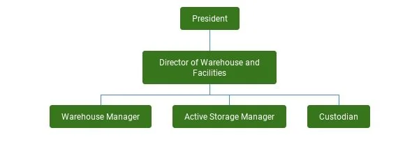 Direct Reports: Warehouse Manager, Active Storage Manager, Custodian